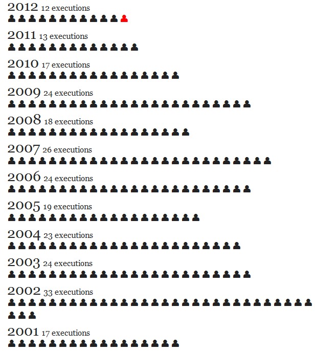 | 250 Executions Under Governor Rick Perry Source: The Texas Tribune |