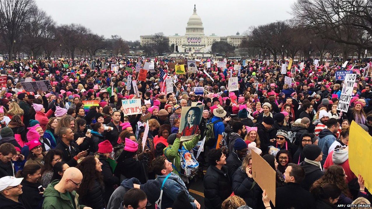Il giorno dopo l'insediamento alla Casa Bianca di Trump, un uomo che ha promesso repressioni, divisioni, smantellamento di diritti e attacchi alle donne, le donne scendono in piazza a Washington, sostenute da una grandissima coalizione di attiviste per diritti femminili. Le parole d'ordine sono resistere, unirsi, empowerment, democrazia. E' la più grande risposta delle donne che si sia mai verificata, nella storia americana, all'insediamento di un nuovo presidente.